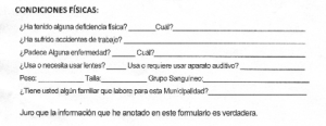 Ocampo explicó que en el pasado un funcionario sufrió un accidente y la Muni no tenía ningún dato médico que solicitó el servicio de emergencias. Desde entonces prefieren solicitar la información a todos aquellos que aplican a un puesto en el municipio.