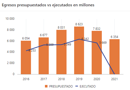Según el Sistema de Información sobre Planes y Presupuestos (SIPP) de la Contraloría General de la República, la baja ejecución presupuestaria es un problema que se viene presentando desde hace ya varios años.